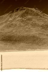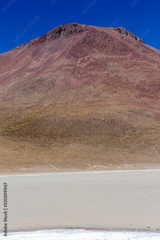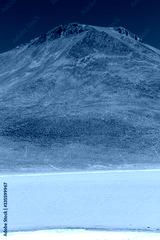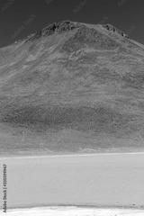 A vertical landscape of lagoon and mountain