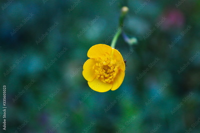 Close up of yellow small flower, with exceptional detail flowers and blurred background