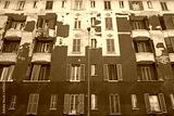Europe , Italy , Milan april 2020 - public housing in Giambellino neighborhood in a state of neglect with falling walls during n-cov19 coronavirus epidemic outbreak - poor people home