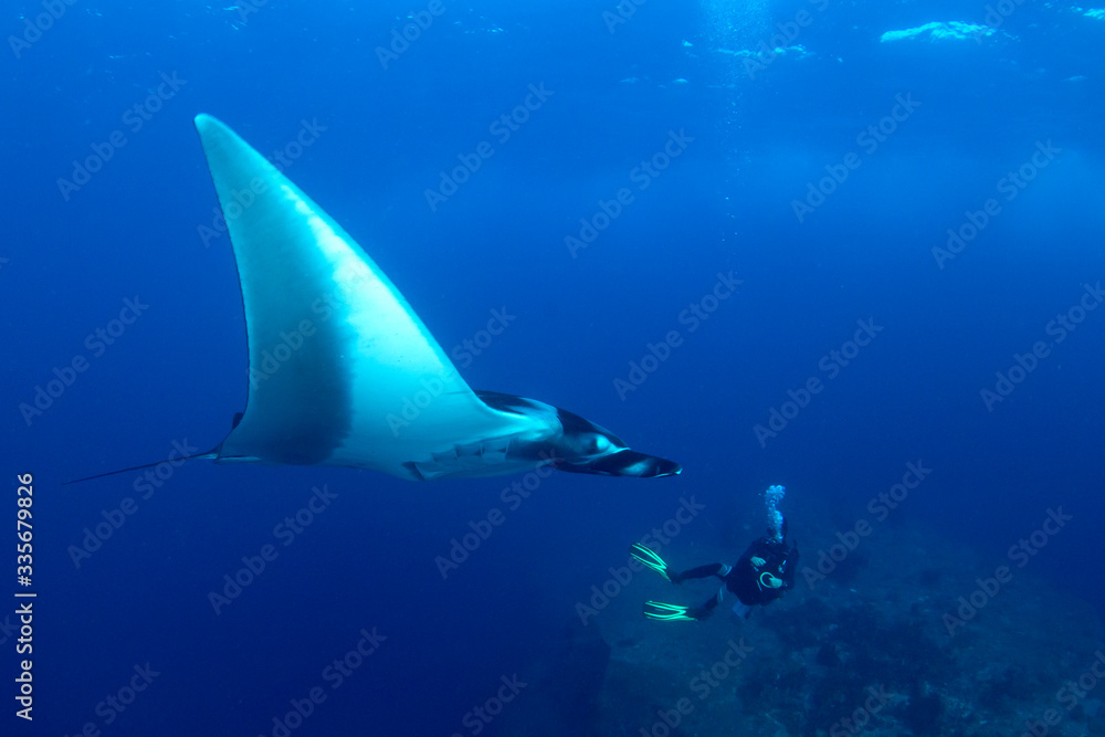 Oceanic Manta Ray and scuba diver