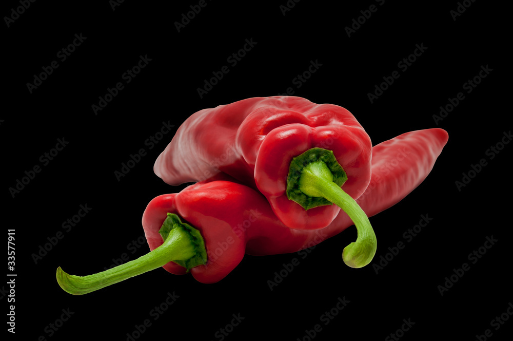 Red Sweet Paprika Long Peppers - clipping path included.
