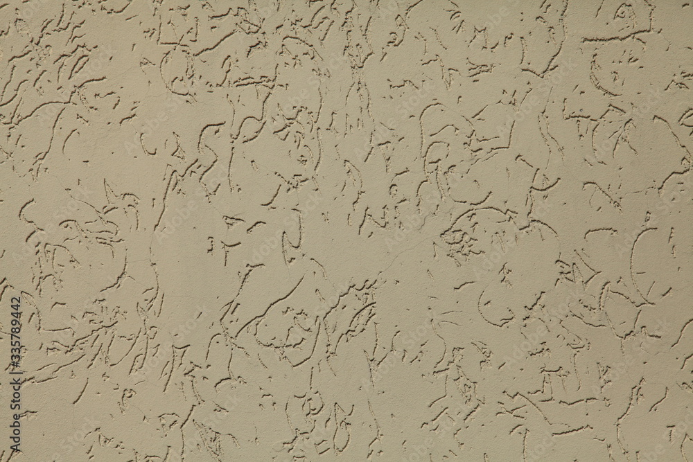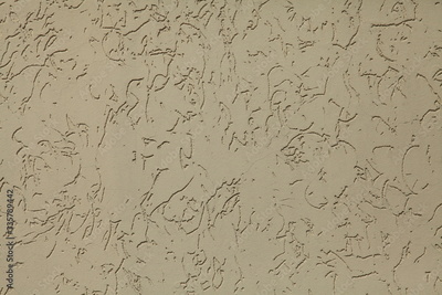 Tracery gray (Ash) wall, texture, background. Plastered building wall, painted with water-based beige paint. Decorated surface with embossed patterns. Elements of the exterior and interior