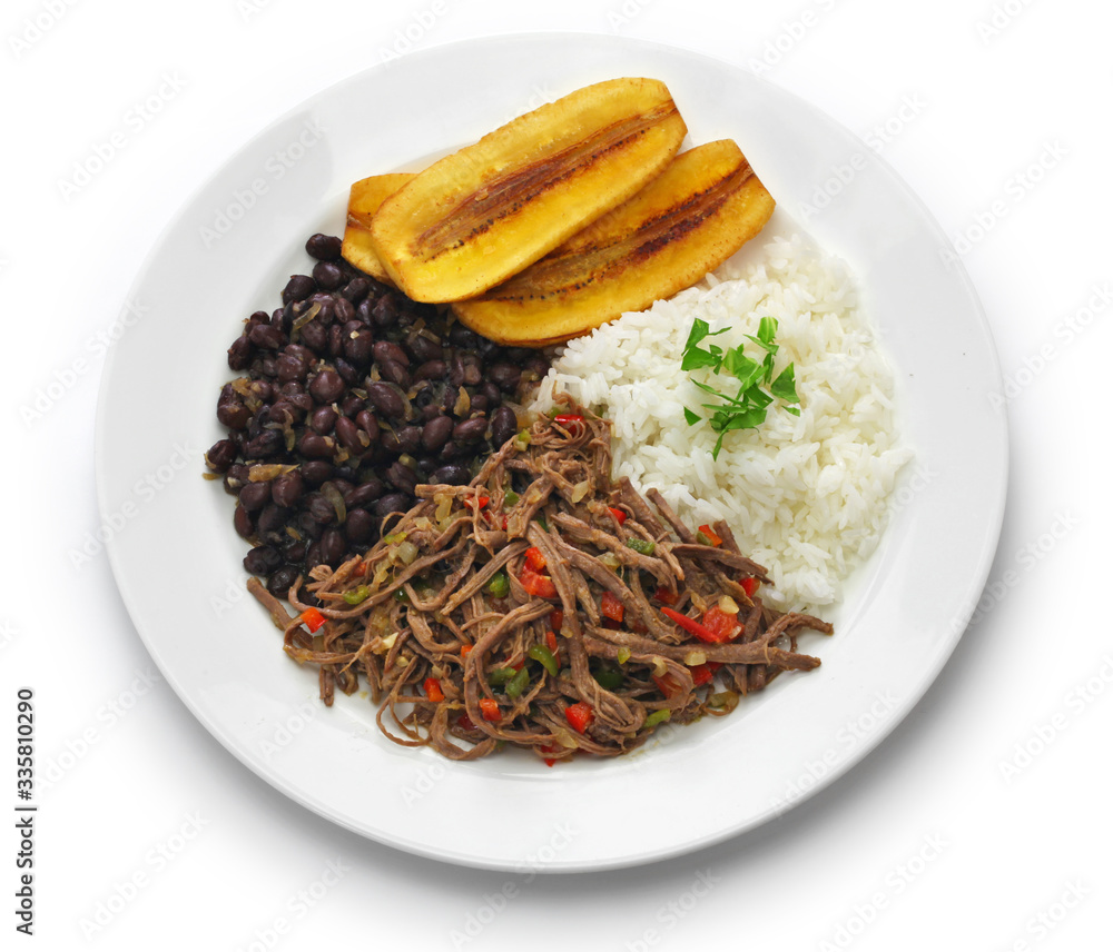 traditional venezuelan dish called Pabellon Criollo isolated on white background