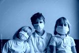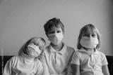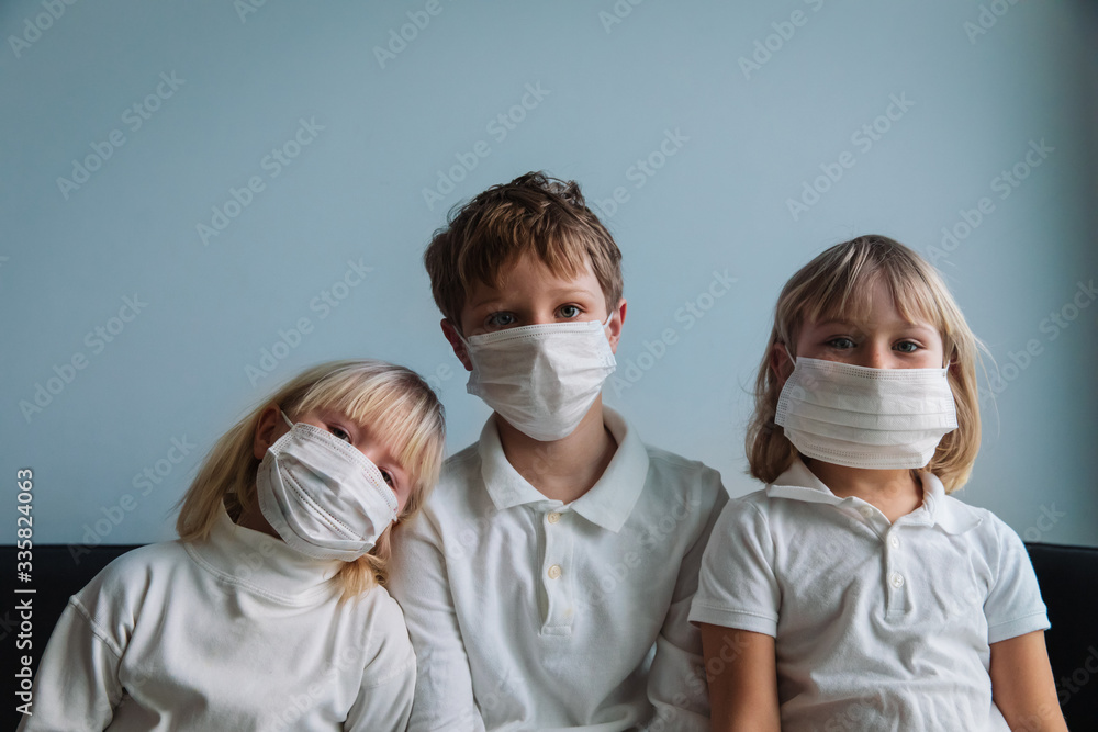 kids with masks, quarantine at home, boy and girls stay home