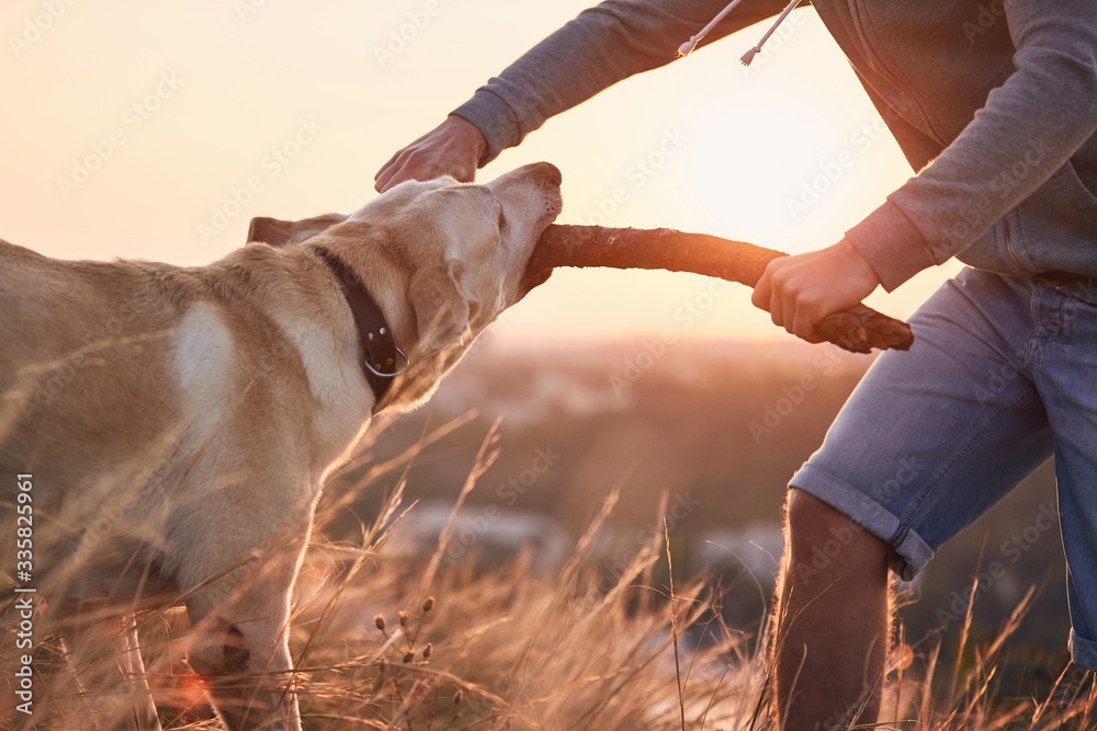 Pet owner practicing his dog