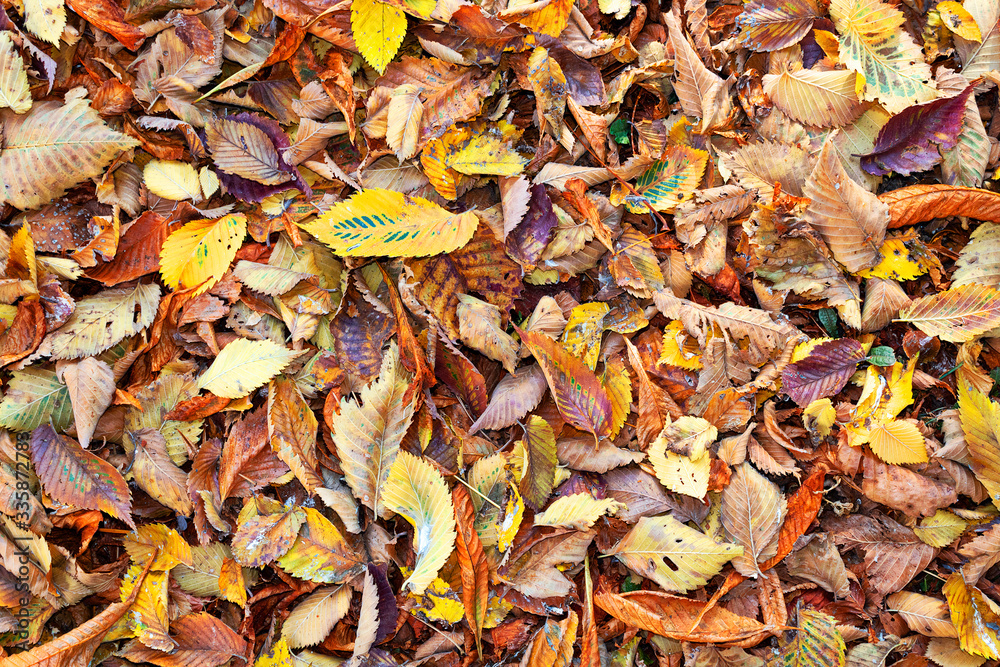 textured view of autumn leaves