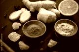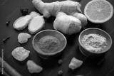 Ginger root, cloves, spices on a black background. Healthy food concept, virus protection, increased immunity during coronavirus quarantine, super nutrition. Selective focus.