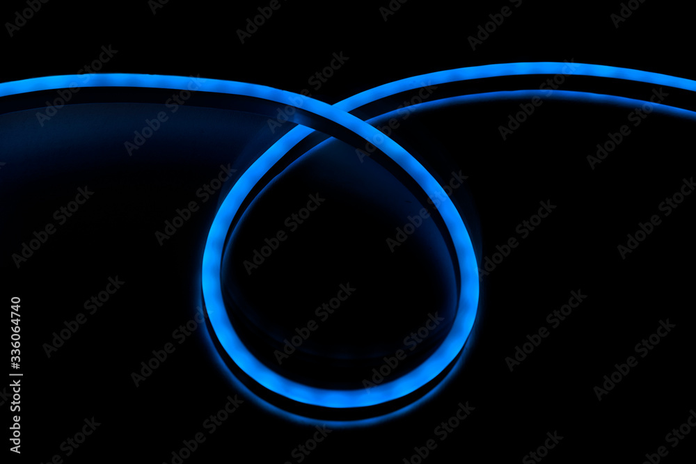Blue LED light diode stripe cable roll on black background. Modern lightning
