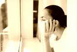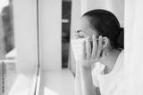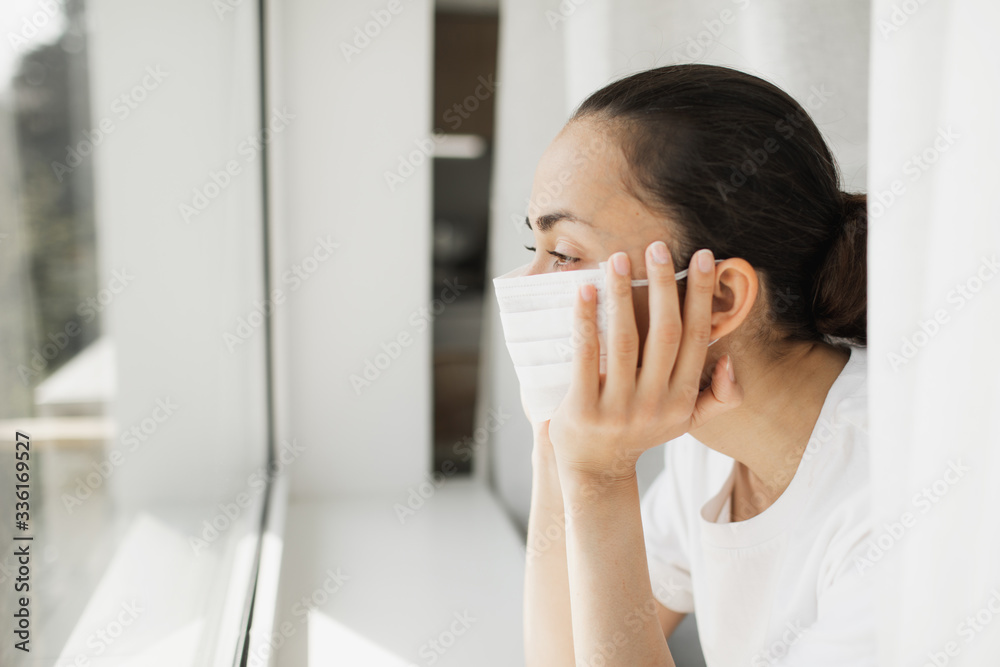Tired doctor in medical mask looking through window. Important job and self isolation during coronavirus pandemic. Hope for medicine.