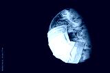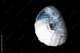 Earth in mask in outer space, coronavirus and COVID-19 pandemic concept. Globe with protect from corona virus.