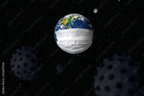 Earth in mask and dark viruses, concept of COVID-19 coronavirus pandemic and safety.