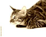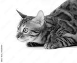 Young Bengal cat breed is ready to jump. Isolated on a white background.