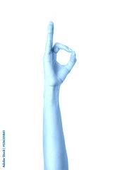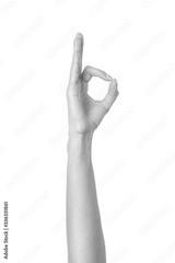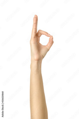 Ok sign. Woman hand gesturing isolated on white