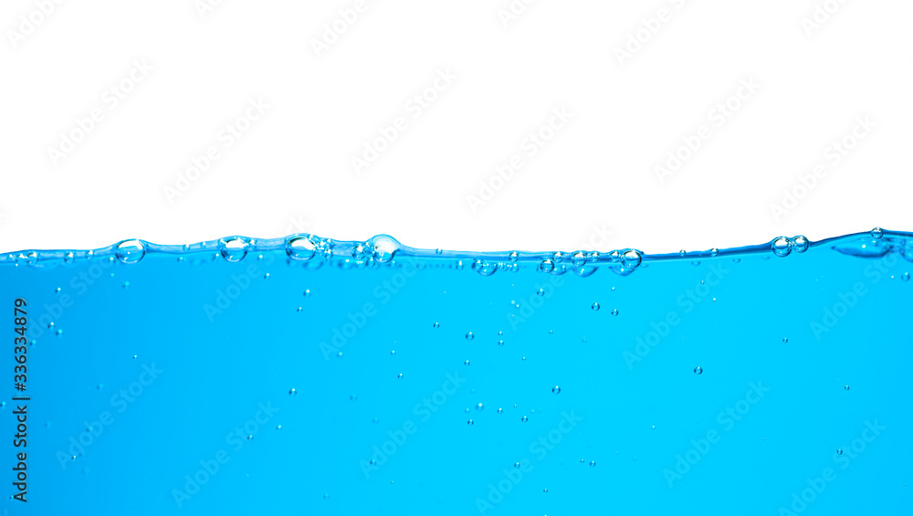 closed up of beautiful curve and nice bubble of drinking water isolated on white background