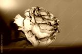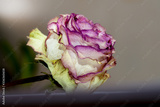 A large dry rose Bud of pale pink color on a gray blurred background. Selective focus. Copy space.