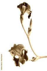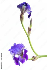 Vertical shot of two magnificent orris flowers with a white background