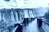 Walking way with view to the dramatic clouds and waterfall at Victoria Falls on the Zambezi River, Zimbabwe, Zambia.