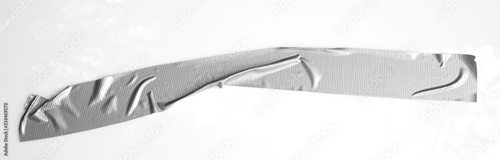 Set of gray tapes on white background. Torn horizontal and different size sticky tape, adhesive pieces.