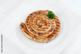 grilled sausage in a ring on a plate