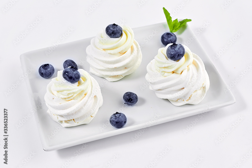 light dessert with fresh berries on a white background