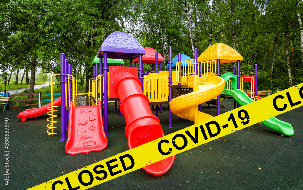 Kids playground closed due to COVID-19 coronavirus. Quarantine and restrictions due to SARS-CoV-2 corona virus outbreak.