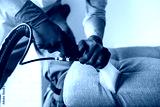 Man cleaning sofa chemical cleaning with professionally extraction method. Upholstered furniture. Early spring cleaning or regular clean up.