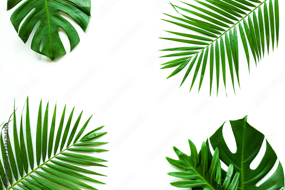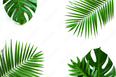leaves of coconut and monstera isolated on white background