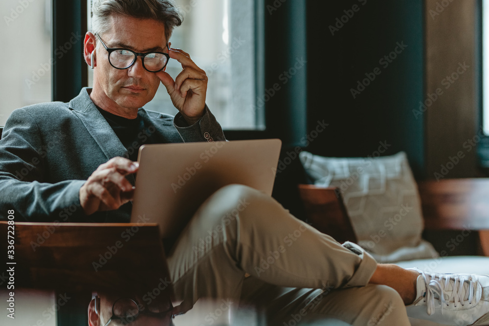 Mature male executive working in office lounge