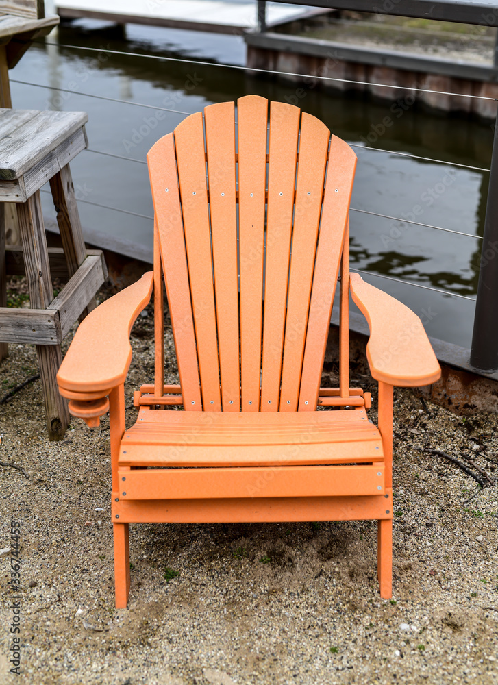 Empty Outdoor lawn chairs in a row