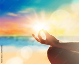 Yoga, meditation and healthy lifestyle. Sunset on the beach.