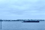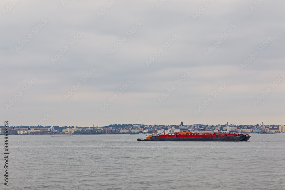 Water transport on the Hudson River near the Manhattan Island, New York.