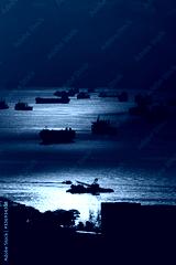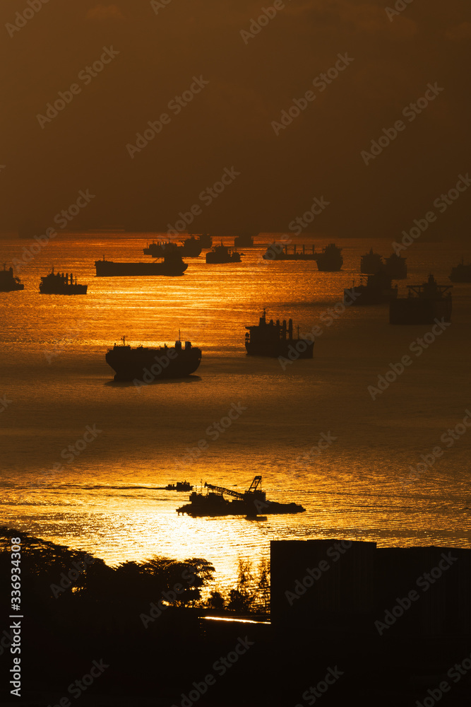 Silhouette image of large number of tankers and container ships at Singapore strait in the morning.