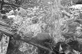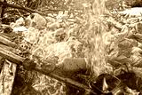 Spring flood and shore with garbage