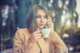 Charming woman with beautiful smile reading good news on mobile phone during rest in coffee shop, happy Caucasian female watching her photo on cell telephone while relaxing in cafe during free time