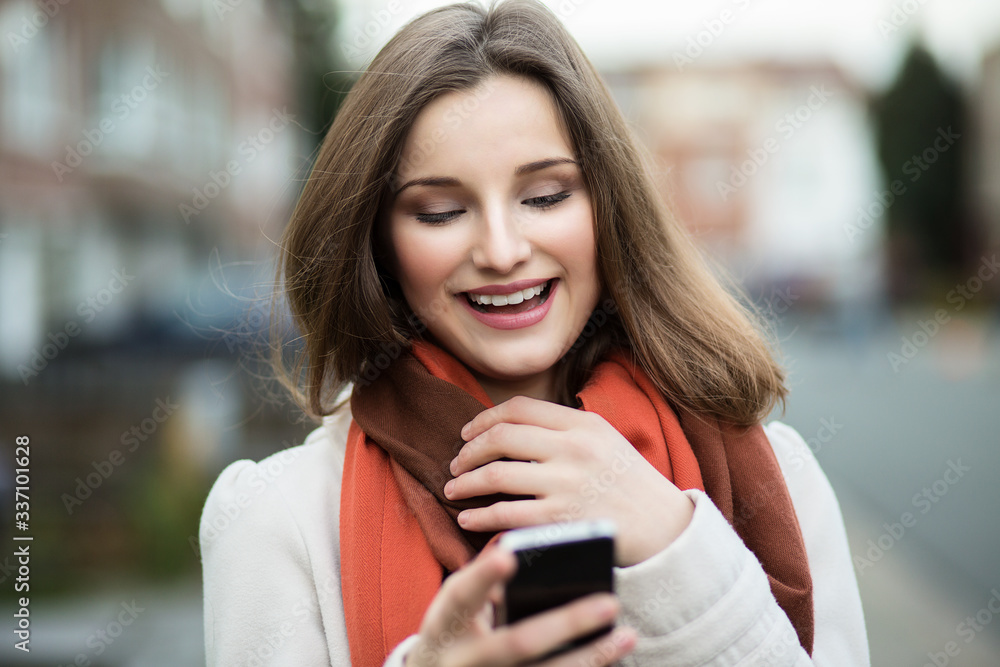 Happy woman texting. Good news