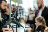 Business forum visitors register at the front desk