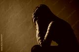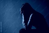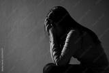 sad woman close her face and cry. Sad woman sitting alone in a dark room.