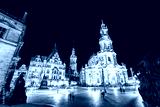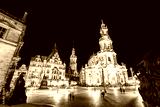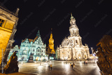 View of cathedral Catholic Hofkirche and palace Georgenbau. Location Dresden, Saxony land, Germany.