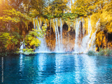 Peaceful view on paradise waterfalls of Plitvice Lakes National Park. Croatian famous resort.