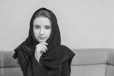Arabic girl wearing abaya.Arab young girl dressed in black abaya . Muslim girl in black abaya female student.