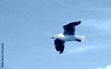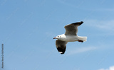 Seagulls flying over the sea. Pier on background