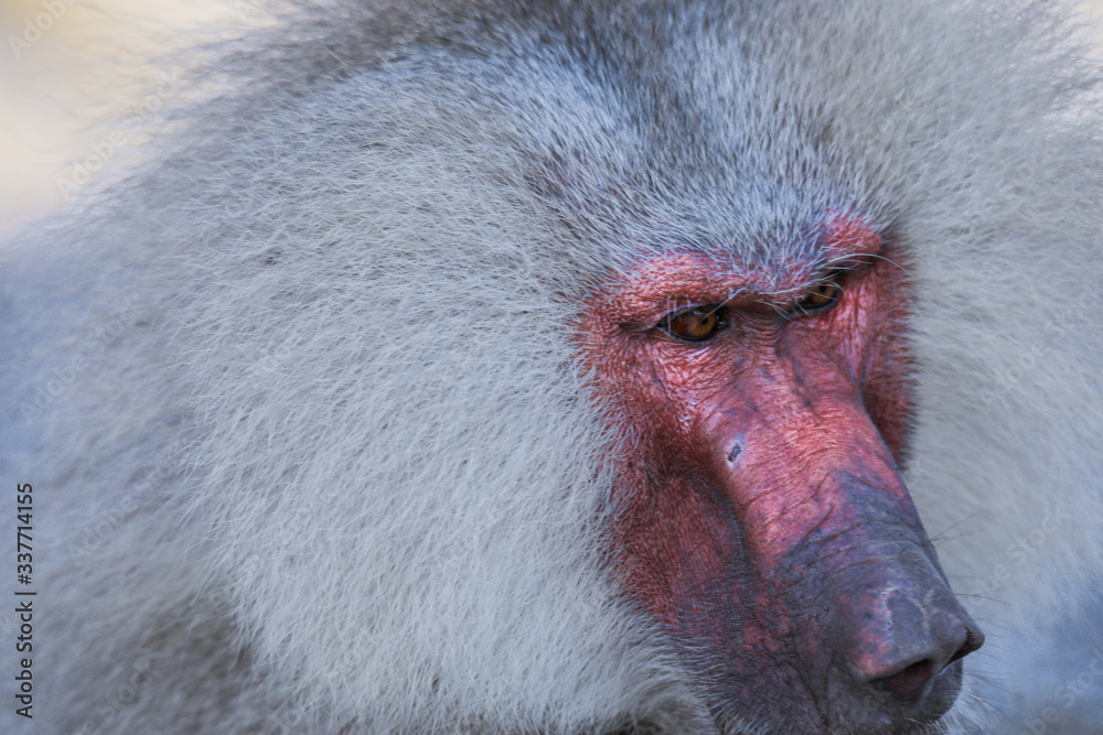 Close up face of the Hamadryas baboon on the Road, Djibouti