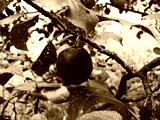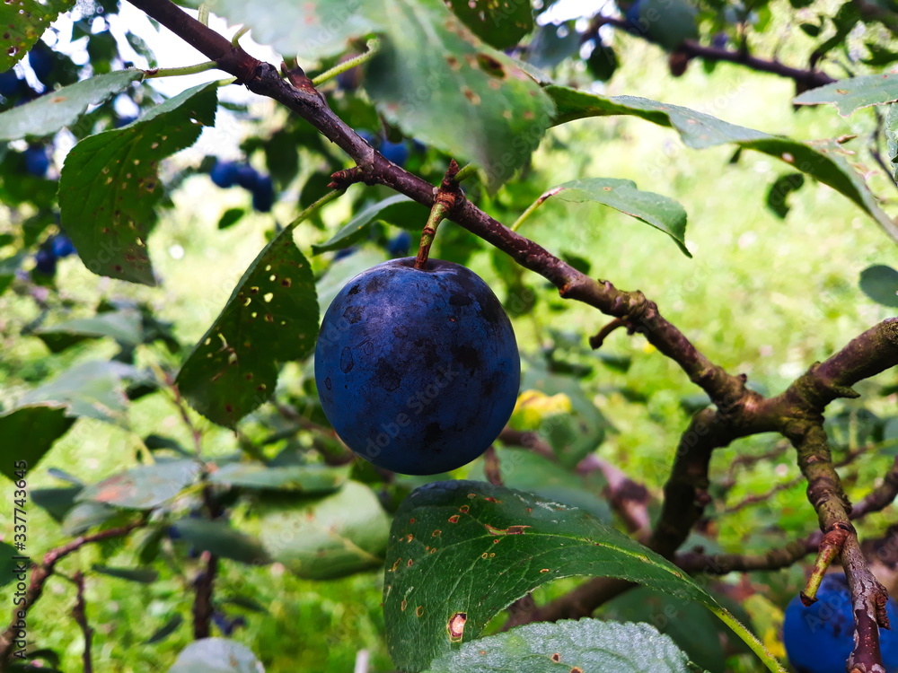 One ripe plum on a branch. Beautiful blue plum on the branch