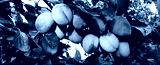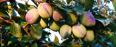 Unripe plums on the branch, the plums begin to blue.