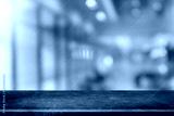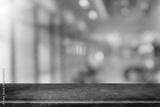 Empty black marble stone table top and blurred coffee shop and restaurant interior background - can used for display or montage your products.