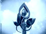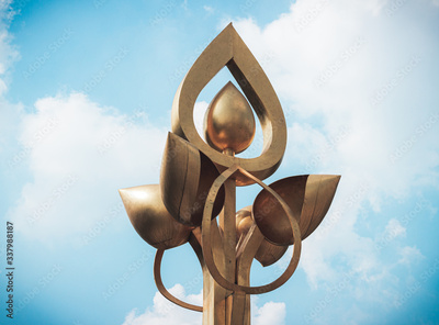 The symbolic pillar of Benjakitti Park in Bangkok, Thailand and Blue Sky close up