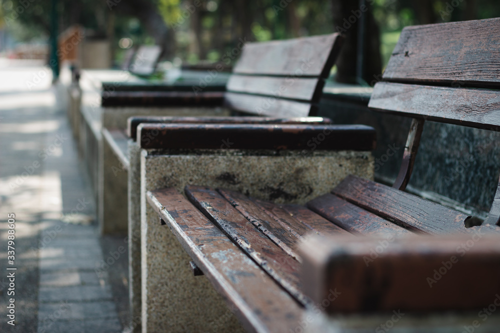 An Empty Bench in the park in the daytime