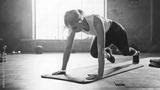 Beautiful and Young Girl Doing Running Plank Exercise on Her Fitness Mat. Athletic Woman Does Mountain Climber Workout in Stylish Hardcore Gym