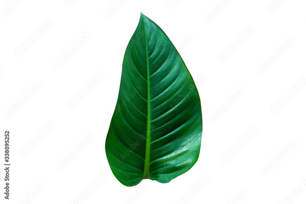 tropical green leaf isolated on white background for design elements, summer background