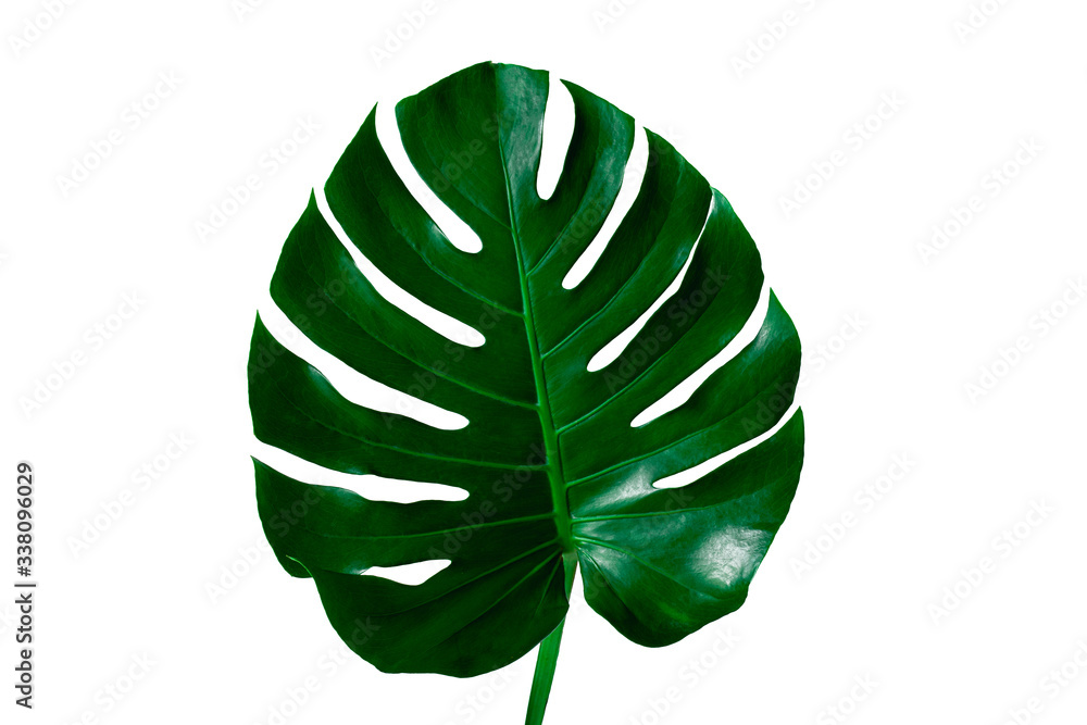 Beautiful Tropical Monstera leaf isolated on white background for design elements, Flat lay